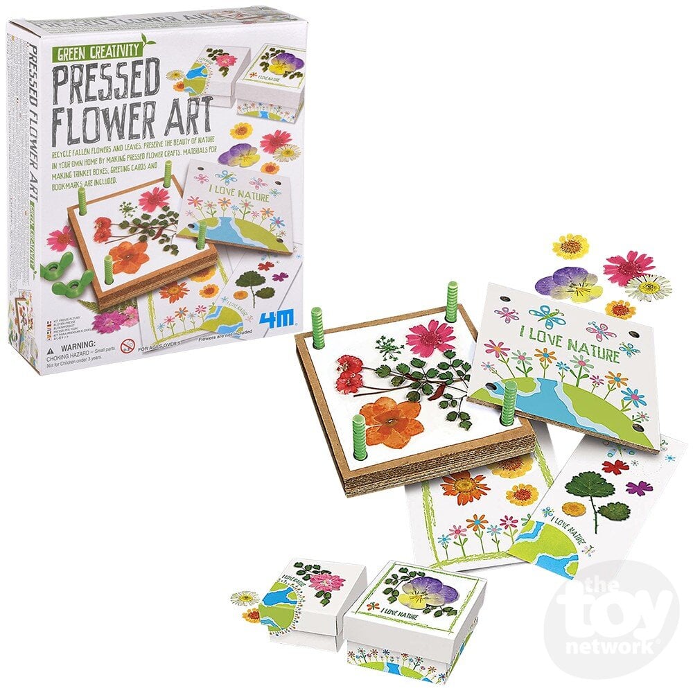 Collect fallen flowers or leaves and repurpose them into art with the Green Creativity - Pressed Flower Art kit. Includes materials for making trinket boxes, greeting cards, and bookmarks.