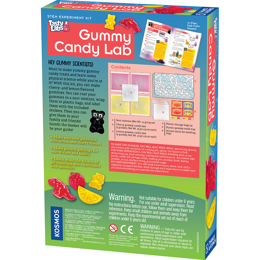 Make your own tasty gummy bears, lemon slices, dolphins, and dinosaurs with this easy DIY kit. Just mix the gelatin, pour it into the included mold, and customize with citric acid for a sour kick. The kit includes all ingredients to create red cherry and yellow lemon gummies while teaching the science of natural polymers for a fun, hands-on treat.