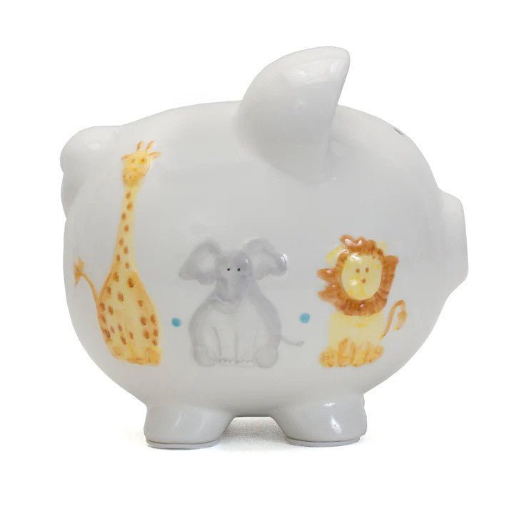 This delightful keepsake is thoughtfully designed to teach children the value of saving while adding a touch of charm to any nursery or child’s room. Adorned with whimsical safari illustrations and playful dots on the ears, this hand-painted piggy bank is as adorable as it is functional.